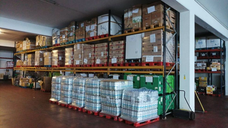 750 toneladas de alimentos al año pasan por esta nave del Polígono del Tambre. Unas 60 instituciones se abastecen de ese almacén para después distribuir la mercancía entre las personas que lo necesitan. José Pita afirma rotundamente que la gente es solidaria recordando que hasta en dos ocasiones tuvieron que gestionar ofrecimientos de un millón de litros de leche, que repartieron entre bancos de alimentos de toda España, o la vez que de una gasolinera les enviaron cien bolsas de comida "cada una con un pollo, bandejas de filetes..."