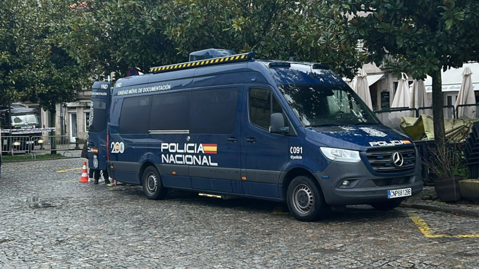 Unidad móvil de documentación en la comisaria de Santiago de Compostela