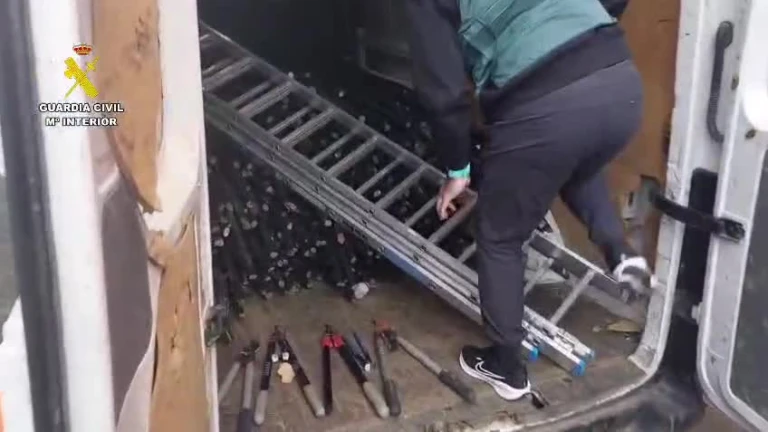 Los guardias civiles actuantes procedieron al registro de los 2 vehículos, localizando en una de las furgonetas más de 3.100 kilogramos de cable de tendido telefónico y en la otra, herramientas de corte, ropa oscura, guantes.