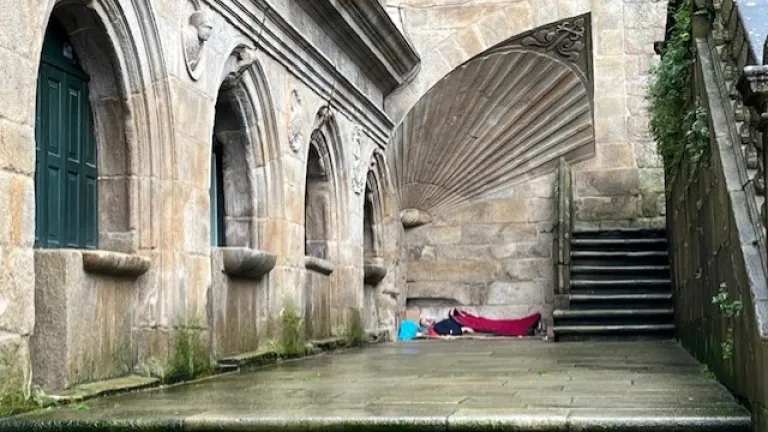 No es exclusivo de la ciudad de Santiago pero la imagen de personas durmiendo en sus calles en puntos del Casco Histórico, la dársena de Xoan XXIII o en parques como el de Galeras se hace si cabe más evidente por el número relevante de los sin hogar que se ven en esta situación en una ciudad de apenas 100.000 habitantes.
