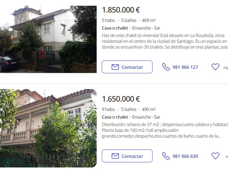 En los portales inmobiliarios se ofertan chalets en Santiago por más de 1,5 millones de euros