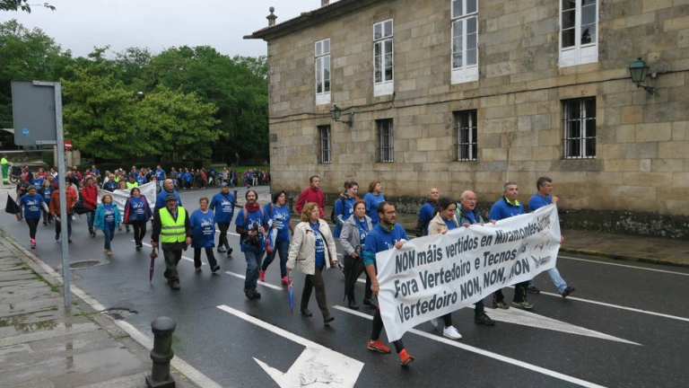 Vecinos de Miramontes, Grixoa y otras zonas del rural compostelano caminaron más de 8 kilómetros para protestar por la "molesta, dañina y peligrosa actividad" que se desarrolla en el complejo de tratamiento de residuos de Miramontes.
