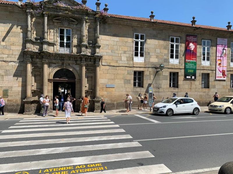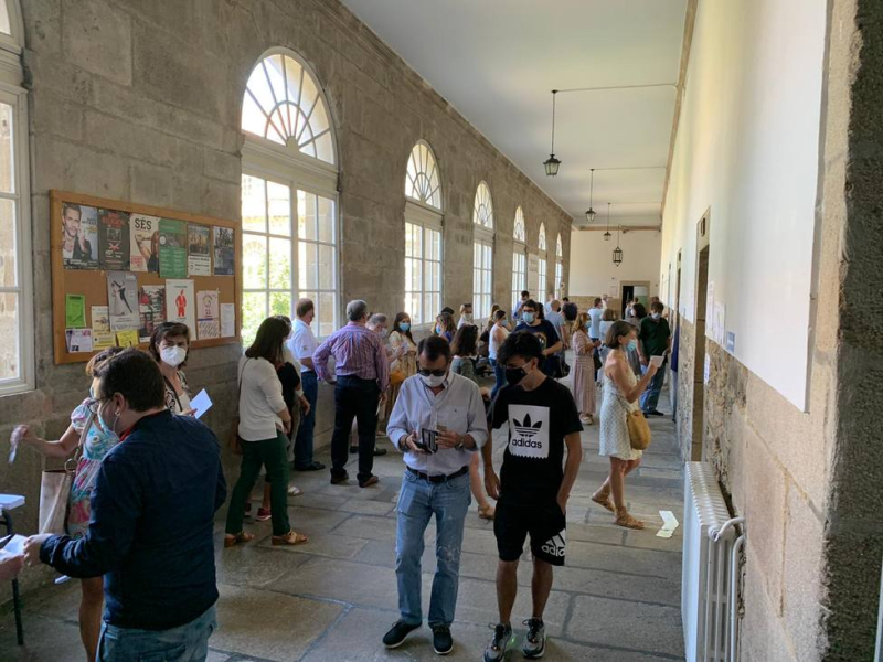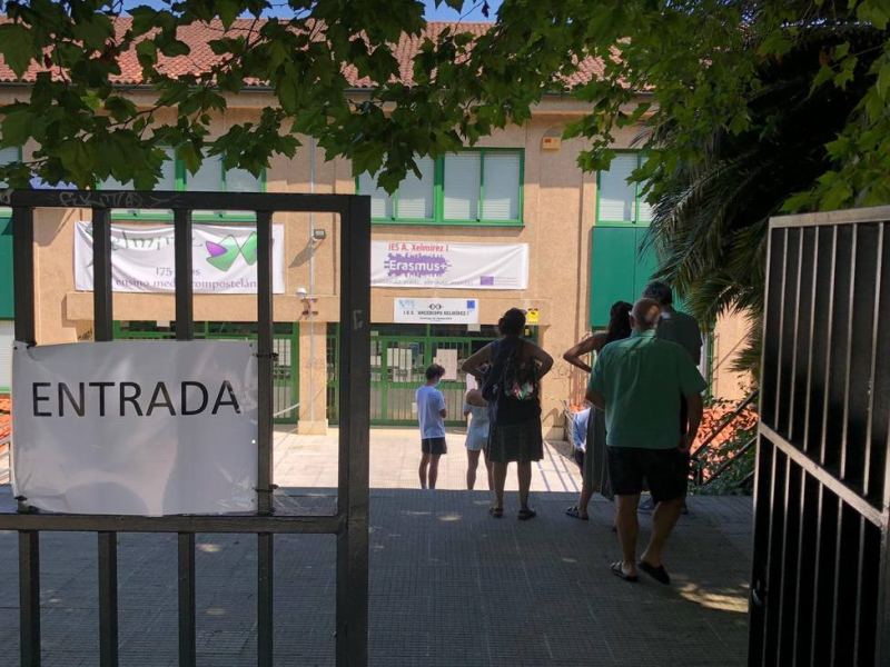 La gente mayor tiene preferencia para ejercer su derecho y evitar esperas innecesarias. Con todo, hemos visto alguna cola motivada por cambios en los colegios, por ejemplo en el IES Rosalía de Castro, en el centro de Santiago.