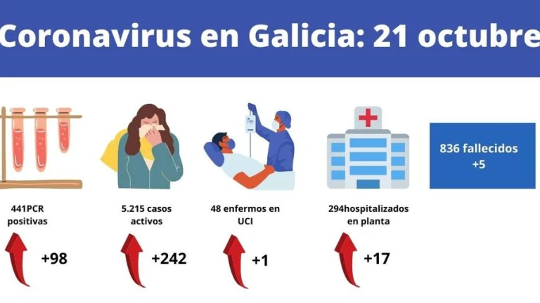Galicia sigue sumando nuevos casos y está crenciendo la hospitalización. Este martes se produjeron hasta 441 nuevos positivos y el número total de personas con la infección activa alcanza las 5.215.