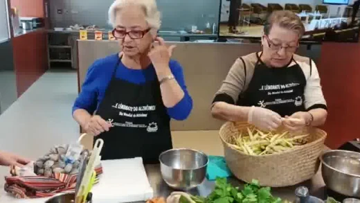 Carmen atendía las indicaciones de ambos desde la experiencia, porque ella fue cocinera hace años, antes de que la memoria empezase a flaquear: "Me gustaba mucho cocinar, trabajé de cocinera unos cuantos años... pero después lo fui dejando por problemas de salud. Pero a veces hago cocido, tortilla..." Puri cocinaba menos: ella se dedicó a la enseñanza "y tanto ir y venir le dejaba menos tiempo", explicaba. Aún así, guarda algún secreto culinario que quiso compartir: "cuando prepares la salsa para las vieiras, acuérdate de poner unos taquitos de jamón".