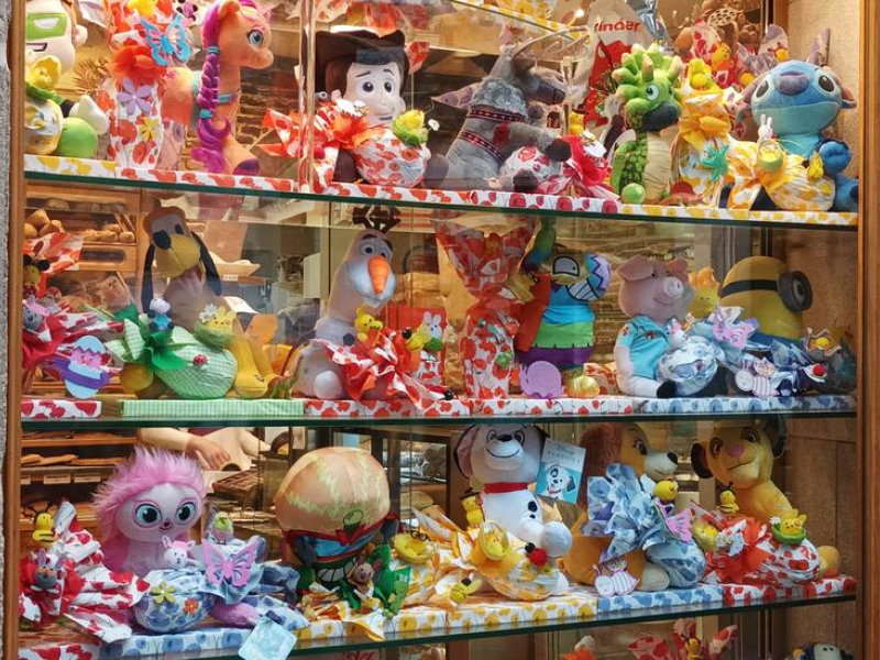 Ovos e Monas de chocolate son o segundo produto máis demandado nestes días... e que cada ano se actualiza: Mónica, de Pastelería Míguez, contounos que teñen "o de sempre, os animais de chocolate... pero este ano tamén mona da Casa de Papel, do Xogo do Calamar e Pitufos" e logo, se a xente quere algo en especial, tamén atenden aos encargos, claro. "Este ano están pedindo moito de Pokémon, que tamén está de moda", indica Mónica. O seu establecemento é dos que ofrecen elaboracións en chocolate tamén para celíacos.