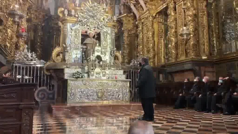 Elisardo Temperán, maestro de ceremonias de la Catedral de Santiago explicando la estructura del Altar Mayor