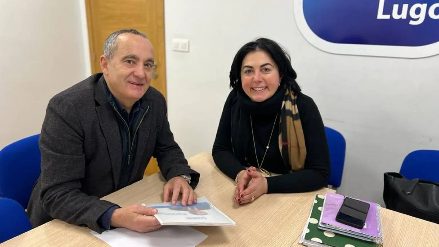 Ramón Carballo y Elena Candia en la sede del Partido Popular