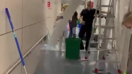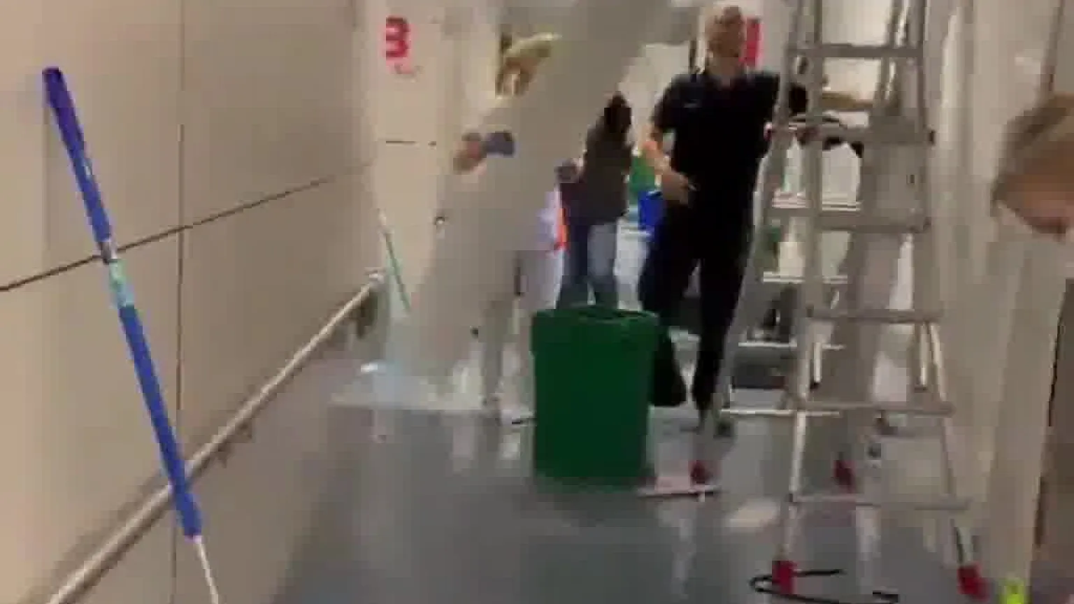 Testigos presenciales informaron de que el personal del hospital tuvo que trabajar a destajo para contener el agua que llegó a correr en algunos puntos del hospital por los pasillos y las zonas comunes.