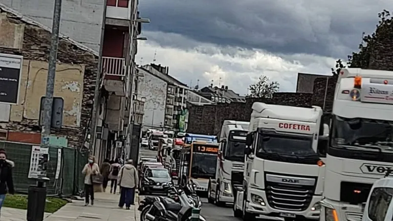 Camiones por el centro de Lugo en el anterior paro convocado por la plataforma