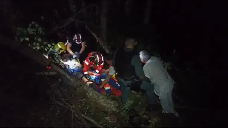 Tras unos dos kilómetros de bajada, hasta una zona por la que pasa un río local, encontraron a la persona herida. Fue atendida en el lugar por personal sanitario, al tiempo que los bomberos se ocupaban de sacarlo de debajo del árbol.