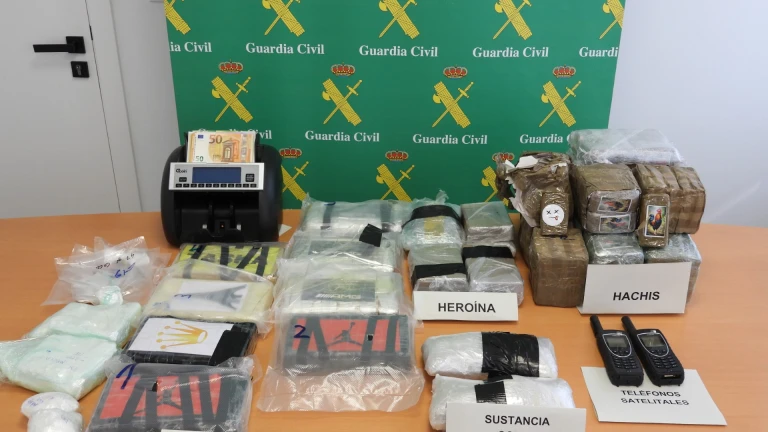 - En total, intervinieron en el domicilio 4,9 kilos de cocaína, 4,2 kilos de heroína, medio kilo de hachís y unos dos kilos de sustancias de corte, además de dos teléfonos vía satélite y máquina de contar dinero.