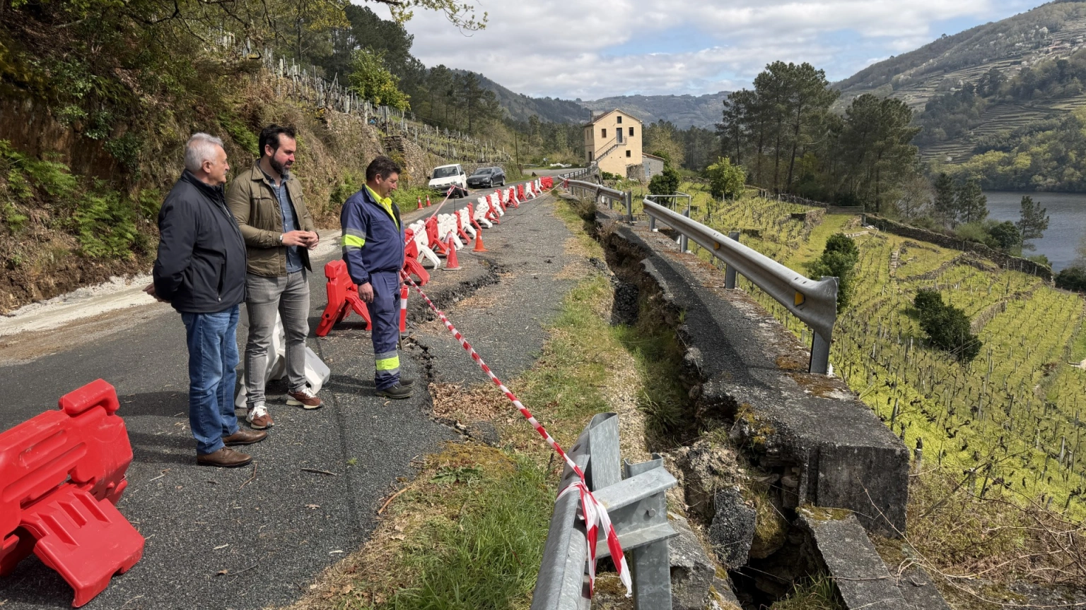 O voceiro do Grupo Provincial Popular, Antonio Ameijide, e o alcalde de Chantada, Manuel Varela, esixiron a PSOE e BNG unha actuación “inmediata e urxente” na estrada provincial LU-P-1801. A visita á vía, que conecta Chantada con Nogueira e Os Peares, serviu para constatar o elevado risco de derrubamento que presenta á altura do quilómetro 15.