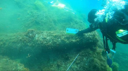 Buceadores de la Armada supervisan los trabajos submarinos del Proyecto de la Ensenada de Arnao donde descansa un buen número de cañones que podrían datar de los siglos XVI y XVIII