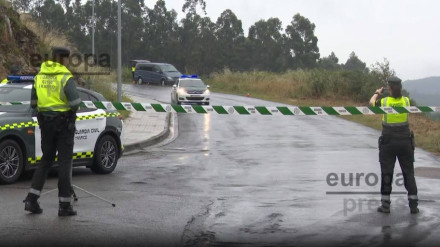 Los agentes de la Guardia Civil realizan mediciones y pruebas de frenada en la curva del siniestro