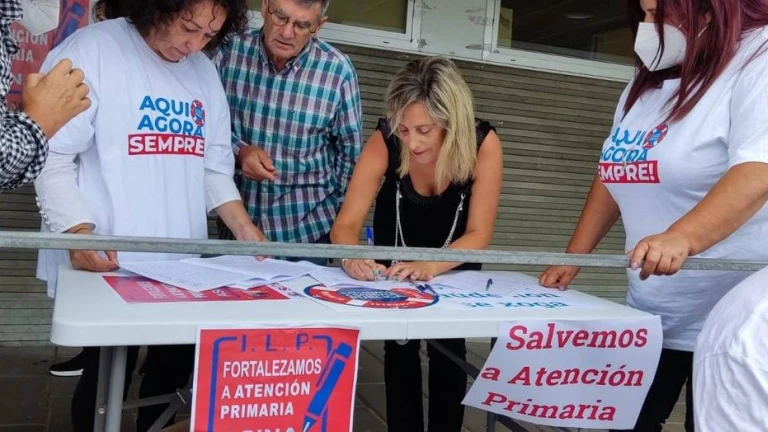 María Loureiro estampa su firma en la recogida impulsada por la Plataforma Sanitaria para reforzar la AP
