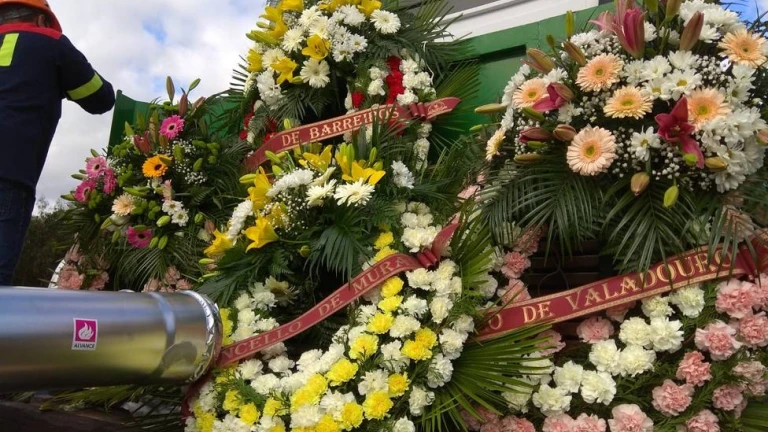 Al llegar a la Praza do Concello de Xove, las coronas que transportaba el camión fueron depositadas frente a la casa consistorial.