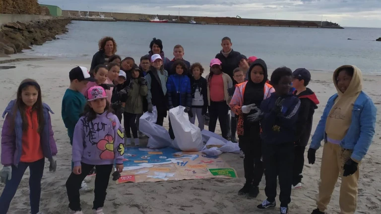 Alumnos del CEIP Vista Alegre de Burela limpian la Playa de Perdouro