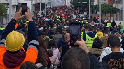 Sindicatos hablan de un "éxito absoluto" de la convocatoria, que, para el vicepresidente de la Xunta, Alfonso Rueda, se interpreta como "una llamada de atención a todo el mundo", si bien centra sus demandas en el Gobierno central, por los efectos de la transición energética y el elevado precio de la electricidad.