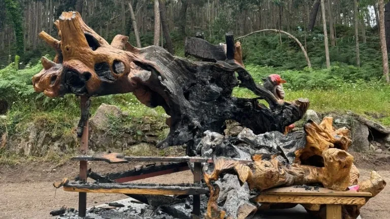 Esta mañana ha aparecido completamente calcinado el Banco de Cinoche, un castaño centenario que había sido arrancado por el temporal Karlotta (en febrero de este año) y luego restaurado y tallado para crear un curioso banco de madera noble.