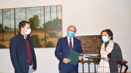 José Tomé Roca y María Dolores Somoza firman el convenio para la formación de redeiras