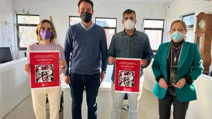 Inés López, Ángel Fernández, Fran Cajoto y Pilar López muestran el cartel del