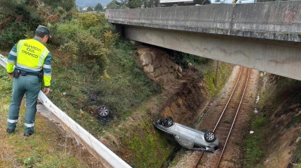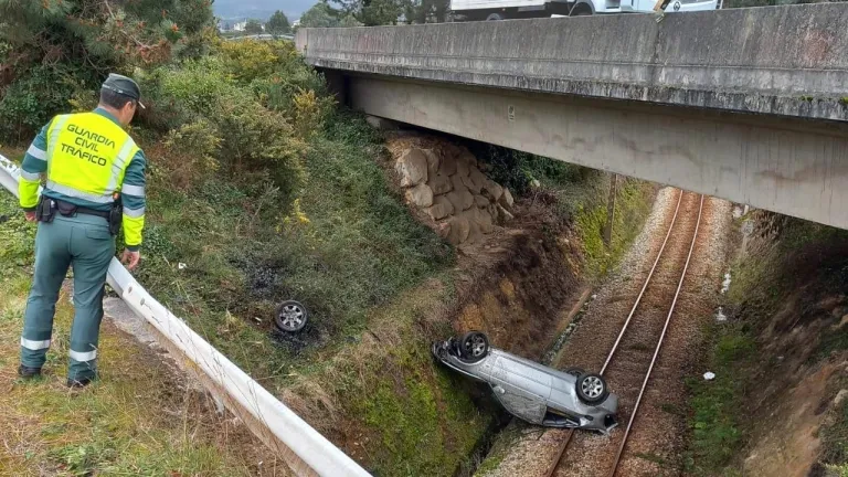 Evacuado al Hospital tras caer sobre la vía del tren con su vehículo