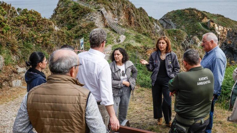 Durante su recorrido por la ruta de senderismo hacia la Punta Socastro, en la que estuvo acompañada por la directora general de Patrimonio Natural, Belén do Campo, y del alcalde de la localidad, Jesús Novo, la conselleira de Medio Ambiente, Territorio y Vivienda, Ángeles Vázquez, incidió en la importancia de garantizar el equilibrio entre lo cada vez mayor número de visitantes y la conservación de los valores naturales de este entorno, que está catalogada como Red Natura 2000.