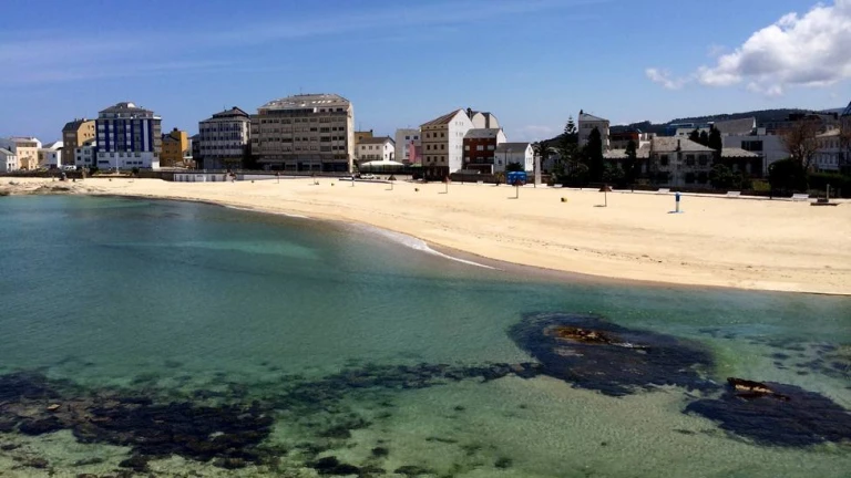 Vista aérea de San Cibrao, desde la playa de O Torno