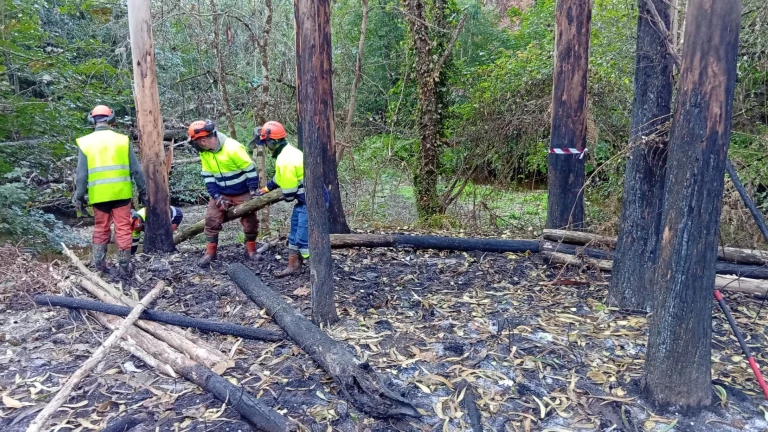Desde finales de agosto, Augas de Galicia está actuando en los márgenes de los ríos para evitar la llegada de cenizas a los canales fluviales de la Demarcación de Galicia-Costa en zonas dañadas por el fuego.