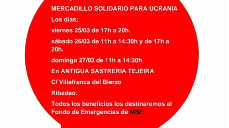 Mercadillo solidario para Ucrania, este fin de semana en Ribadeo