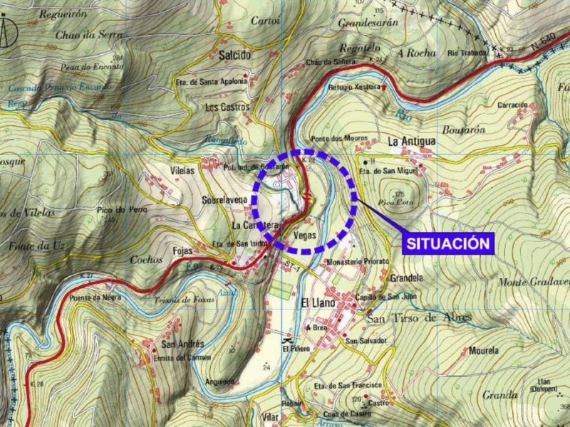 Ubicación de la futura glorieta para el calmado del tráfico de la N-640 a su paso por San Tirso de Abres