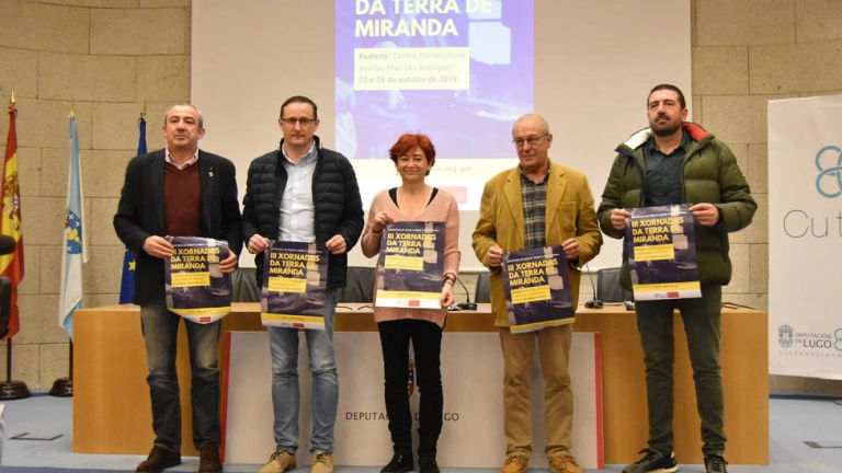 La vicepresidenta de la Diputación de Lugo, Maite Ferreiro, y el presidente de Nova Escola Galega (NEG), Xosé Lastra, presentaron esta mañana las III Xornadas da Terra de Miranda, un encuentro de debate sobre el medio rural organizado por la asociación pedagógica con la colaboración del ente provincial, y que se celebrará los próximos 25 y 26 de octubre en el Centro Sociocultural Avelino Díaz de Riotorto.