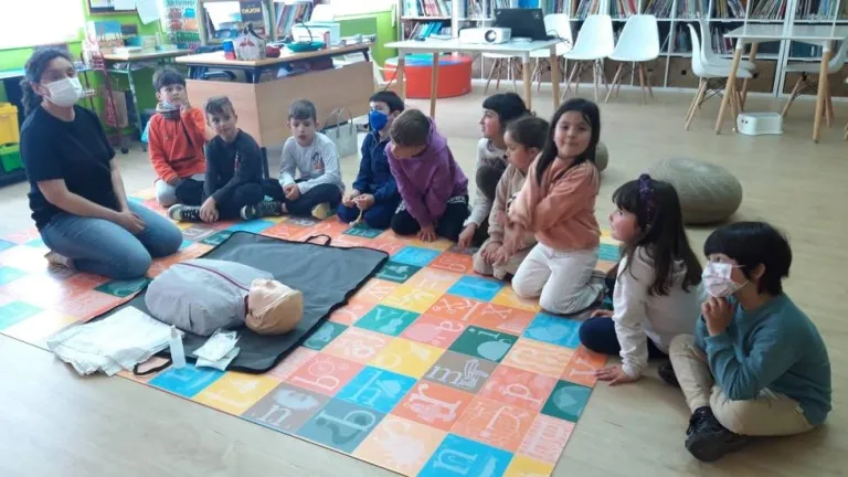 Los alumnos de Infantil, 1º y 2º de Primaria han aprendido este lunes cómo actuar ante una emergencia. Desde la colocación de una persona que pudiera estar sufriendo un infarto, hasta cómo comunicar el suceso al 112, y realizar ellos mismos las primeras maniobras de reanimación cadiopulmonar.