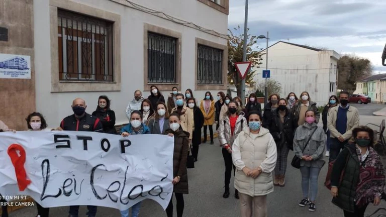 El profesorado del colegio Sagrado Corazón, de Ribadeo, se manifestó este sábado delante del centro contra la nueva ley de educación, la LOMLOE, conocida como la ley Celaá.