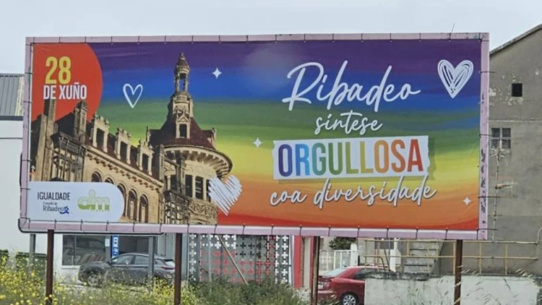 El Ayuntamiento de Ribadeo ha instalado una valla publicitaria junto a la gasolinera de la entrada para reivindicar los derechos de la comunidad LGTBIQ+ con ocasión de la conmemoración, el 28 de junio, del Día del Orgullo.