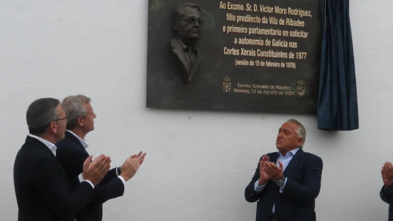 Ribadeo ha rendido un homenaje póstumo a Víctor Moro, hijo predilecto del ayuntamiento. Lo ha hecho descubriendo una placa instalada en la zona del Puerto Deportivo, en el seno de un acto público al que asistió, además de la familia y numerosos representantes políticos, el presidente de la Xunta, Alfonso Rueda.