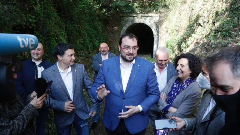 El presidente del Principado, Adrián Barbón, y la consejera de Cultura, Política Llingüística y Turismo, Berta Piñán, han visitado hoy en San Tirso de Abres uno de los tramos de la ruta del antiguo ferrocarril minero que unía la localidad con Ribadeo, cuyo trazado de 14 kilómetros se acondicionará en el marco de este plan turístico para habilitar una senda que sirva de reclamo para vecinos y visitantes.