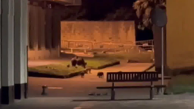El tranquilo paseo de una familia de jabalíes la noche del sábado por Ribadeo