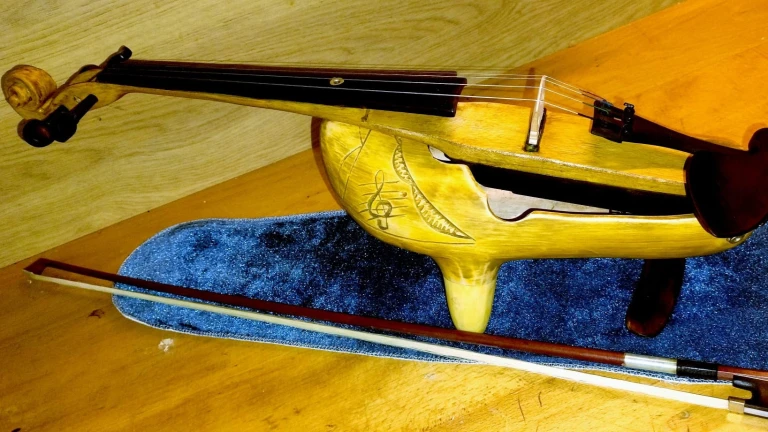 Es un violín y emite música pero se puede andar con él, o mejor dicho, con ella. No es una adivinanza, es la última creación del artista zoqueiro gallego, Alberto Geada: una zoca cántabra. Es “La albarca electro sonora”.