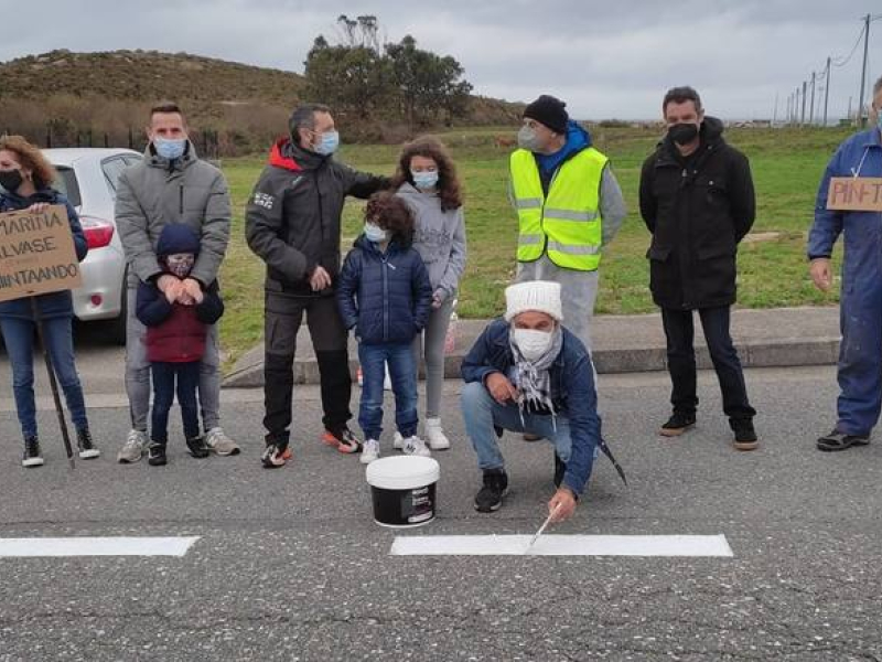 Usuarios de la vía que une Cervo y Burela pintan la señalización para evitar peligros