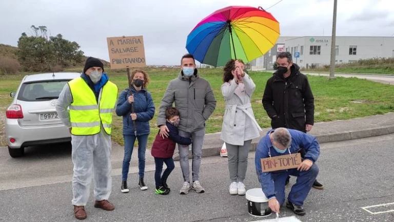 Los vecinos y usuarios de la vía están convencidos de que si no protestan nadie se acuerda de La Mariña y han tomado el lema de Alcoa para adaptarlo a la ocasión con carteles que rezan "A Mariña sálvase pintando".