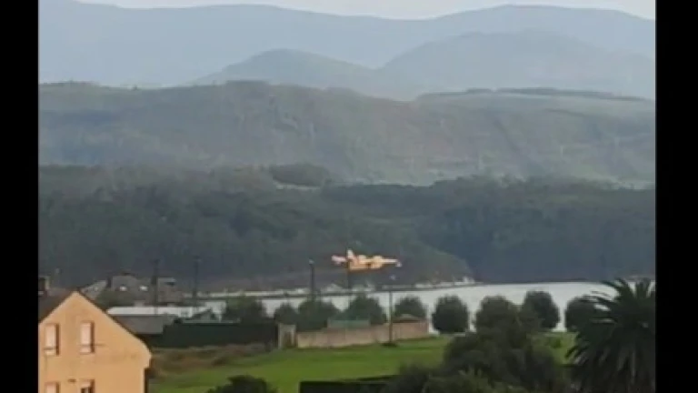Hidroaviones cogiendo agua en la Ría de Ribadeo
