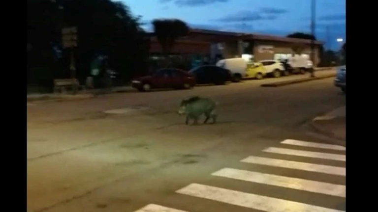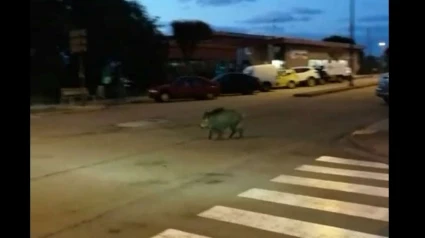 Un jabalí paseo por el centro urbano de Ribadeo, Avda Rosalía de Castro