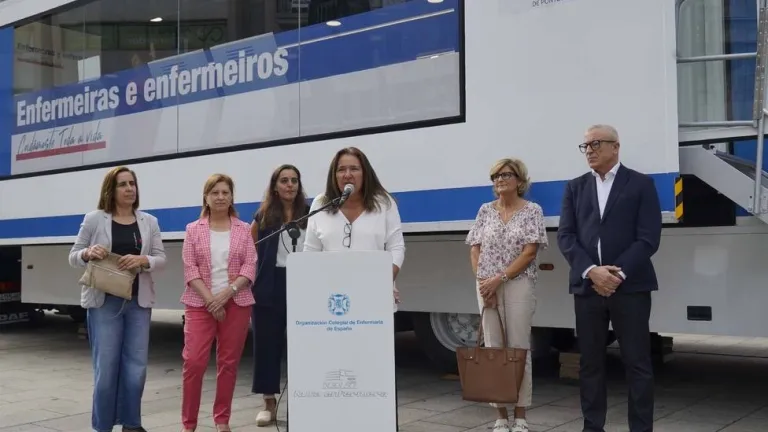 Ana Ortiz visitou este luns no Farol de Urzaiz o tráiler que chega a Vigo por iniciativa do Consello Xeral de Enfermería para promover a saúde e poñer en valor a profesión