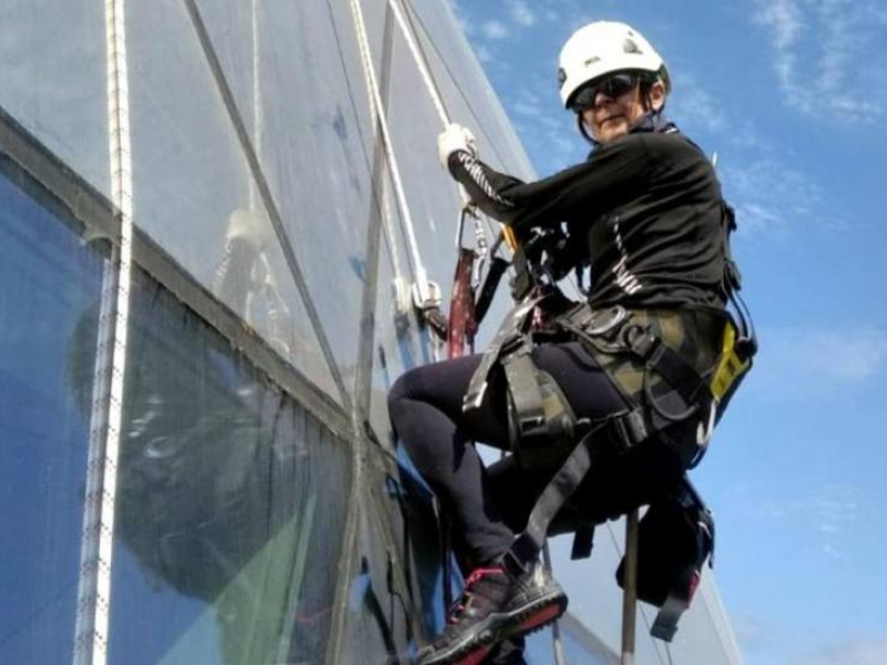 Actúa cuando por las características del edificio no se puede colocar un andamio. Es aficionada a la montaña y a la espeleología y eso le ha ayudado mucho en su día a día.