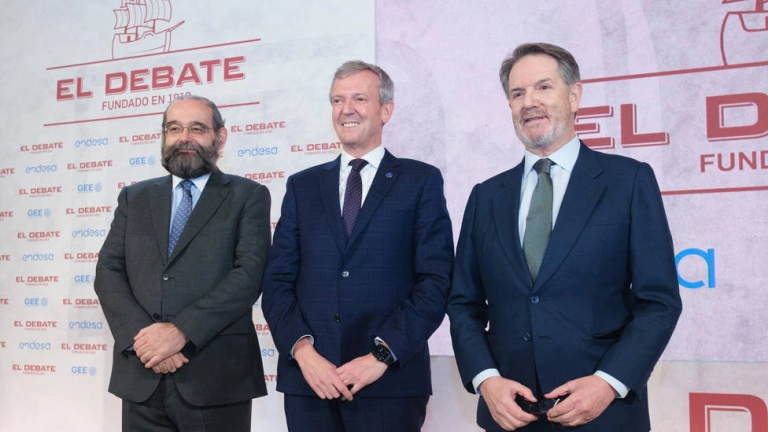 O titular do Goberno galego, Alfonso Rueda, acompañado de membros do Executivo autonómico, asistiu esta tarde á presentación da edición en Galicia do xornal dixital El Debate.