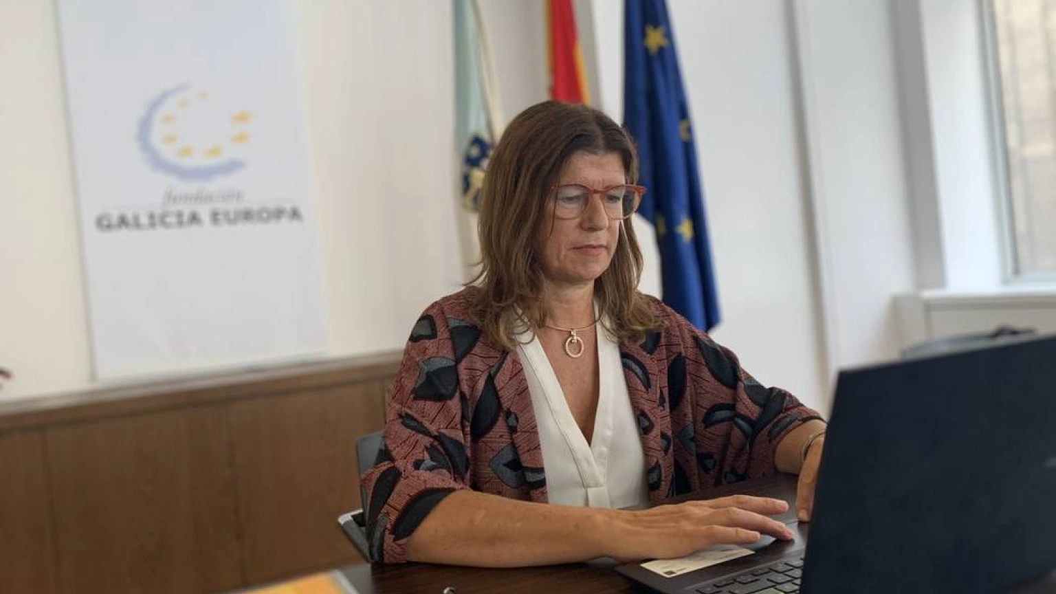 A directora da oficina de Bruxelas da Fundación Galicia Europa, Ana Ramos, inaugurou o último encontro de 2023 do ciclo ‘FGE | NextGeneratiOn Galicia’