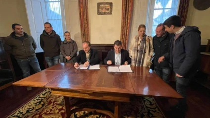 O conselleiro de Cultura, Román Rodríguez, e o alcalde, José Crespo, asinan un convenio para as actuacións de conservación