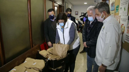 Declaraciones del conselleiro de Medio Rural, José González, en la entrega de los menús a Cáritas Ourense